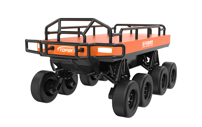 為應對野外山地、叢林、泥濘等非結構化地形,采用8輪與獨立懸掛的輪式底盤,平穩適配崎嶇場地,穩定穿越 陡坡、臺階、沙石地等,彌補輪式機器人在復雜地形的短板。同時可在 - 20℃至 50℃的寬溫區間穩定作業。