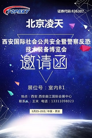 2017年5月23日-25日,西安國際社會公共安全暨警察反恐技術(shù)裝備博覽會將在西安曲江國際會展中心盛大召開。屆時(shí),北京凌天將集中展示警用無人化作戰(zhàn)系列裝備、偵查反偵查、安檢排爆、反恐處突等系列高精尖警用裝備。