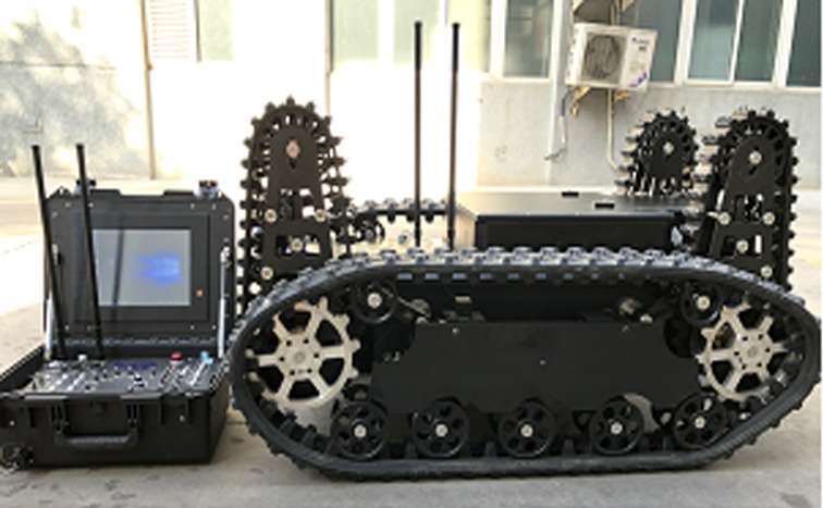 2、采用前后4擺臂+履帶的結構形式,履帶和擺臂適合復雜地形,可以提高越障性能;