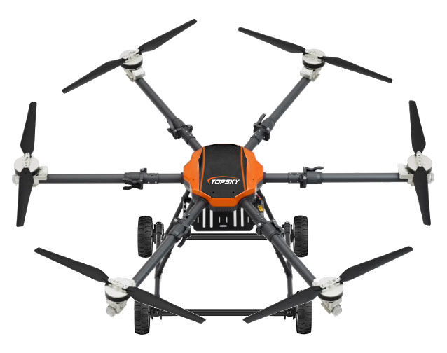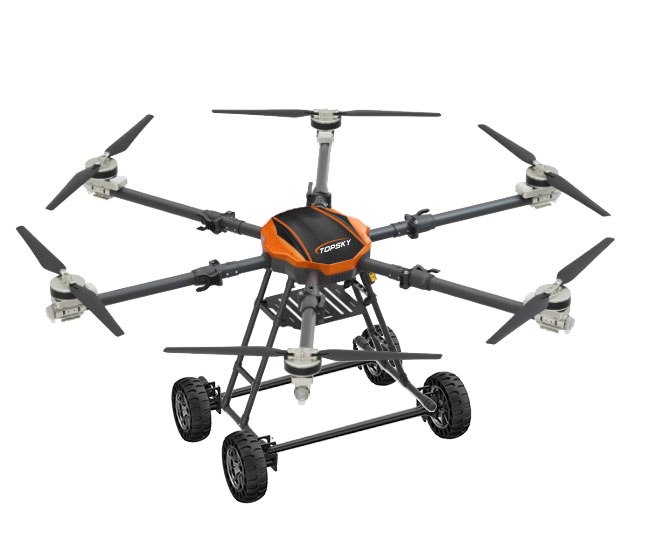 本陸空兩棲無人機平臺為北京凌天智能裝備集團研發的集多旋翼無人機與陸地行駛系統于一體的陸空兩棲無人機平臺(多用途偵檢無人機),采用六旋翼機身設計,配備可快拆的陸地行駛系統,能夠空中飛行與地面行駛兩種模式間自主或受控切換,既能空中飛行,又可陸地行駛。載重大,續航長,并且機體折疊標準化負載接口、集成航電系統、核心傳感器雙冗余備份系統。搭載長距離實時通訊鏈路,實時傳輸現場環境數據及無人機飛行數據。配備智能控制系統,可滿足多種場景和多種方式的作業需求。本陸空兩棲無人機平臺可適應復雜多變的環境與任務需求,極大地擴展了傳統無人機的作業邊界。可搭載多種載荷,如:四光吊艙、氣體檢測儀、喊話器,滿足環境偵查、應急教援、安全疏導、氣體檢測等不同場景的行業應用。