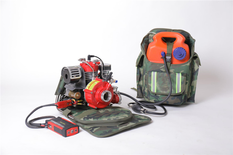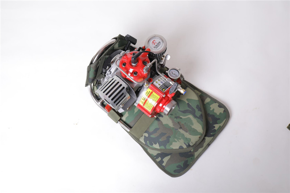 ⑿配有兩套專用水泵和油箱的雙肩高檔背包,更方便攜帶和翻山越嶺的行軍,此背包可以快速拆卸,避免背帶系統接觸水源,防止消防員背負時弄濕衣服,冬季可減少衣服和背包結冰的幾率。