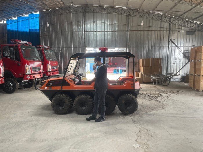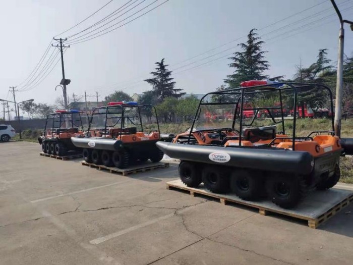 在復雜惡劣的地形條件和自然環境下,水陸兩棲全地形車可以讓搜救隊員和攜帶的救援裝備快速到達救援現場,減少徒步帶來提供消耗,完成最后一公里最好五分鐘緊急救援任務。水陸兩棲全地形車可配備點到絞盤、救援擔架組件、探照燈、警示燈、警報器、脫鉤、破拆工具等裝備, 給救援團隊提供救援保障,更安全的解救傷員和疏散群眾。