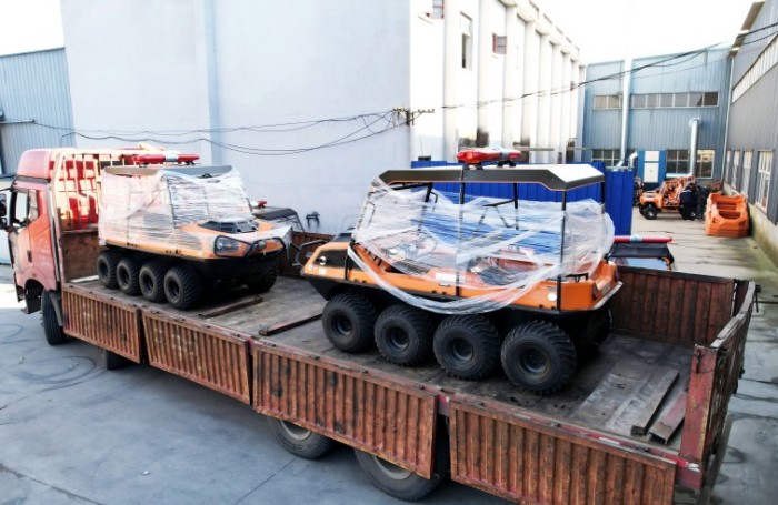 針對水災頻發的地區,水域救援任務必不可少。但往往洪澇災害、城市內澇往往伴隨著惡劣的天氣和崎嶇的地形,沖鋒舟需要多次搭載不同交通工具并數次轉移,水陸兩棲全地形車可以輕松通過水淹、泥濘、沼澤等環境,無需人力搬運,實現陸地駕駛和水中行走自由切換,以最快的時效抵達現場實施救援。